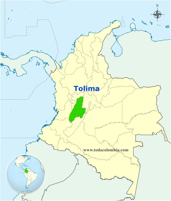 El Departamento del Tolima está situado al Centro de la Republica de Colombia y sus territorios hacen parte de la región Andina.